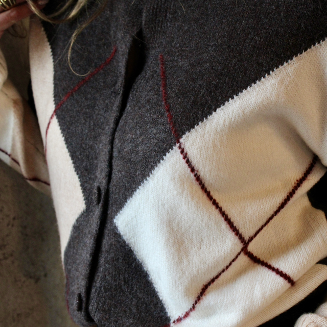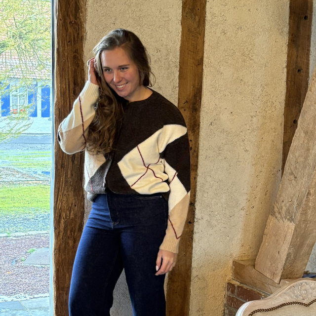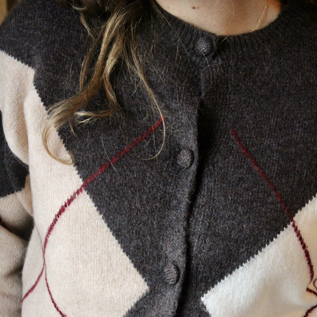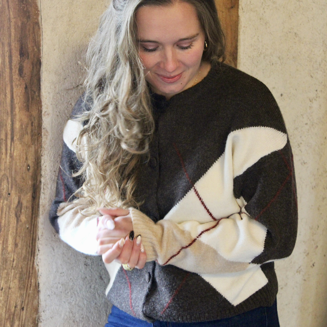 Gilet quadrillé marron et blanc