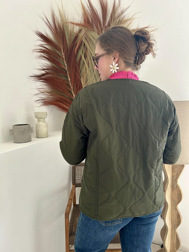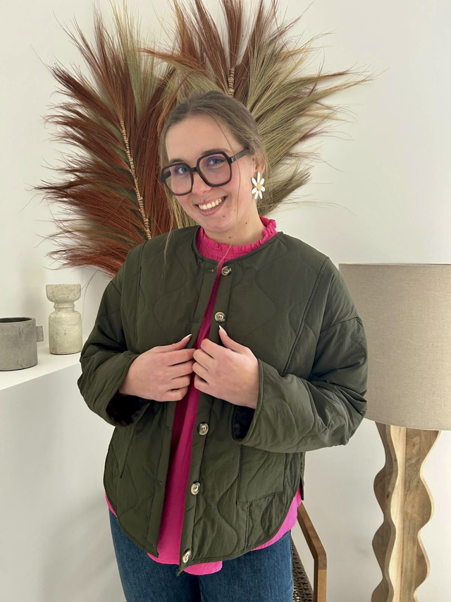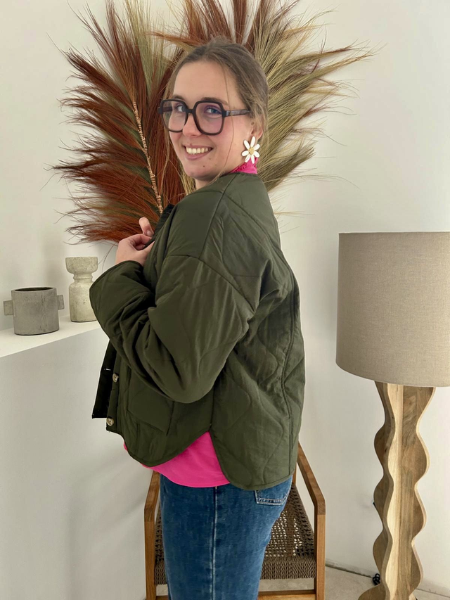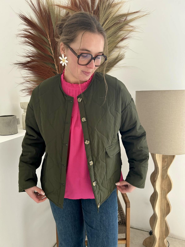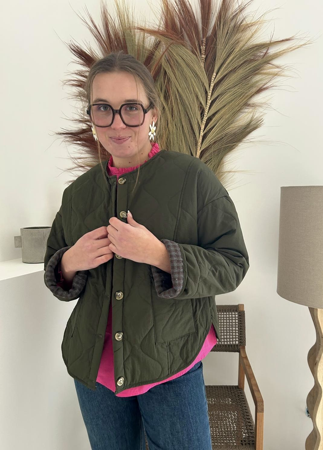 Motif à carreaux bleu et marron visible sur les plis des manches